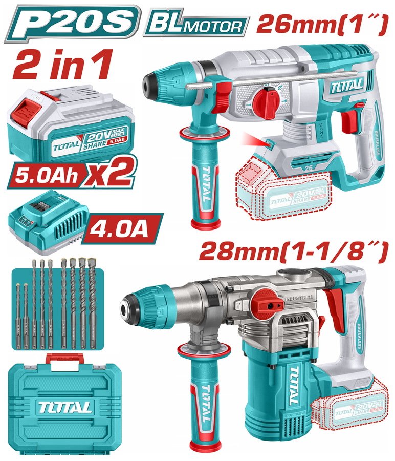 TOTAL ΕΠΑΓΓ. ΣΕΤ ΠΝΕΥΜΑΤΙΚΑ ΠΙΣΤΟΛΕΤΑ 2τεμ ΜΠΑΤ. Li-ion 20V / 5Ah / 2 ΜΠΑΤ. BL Motor (TOSLI250462E)