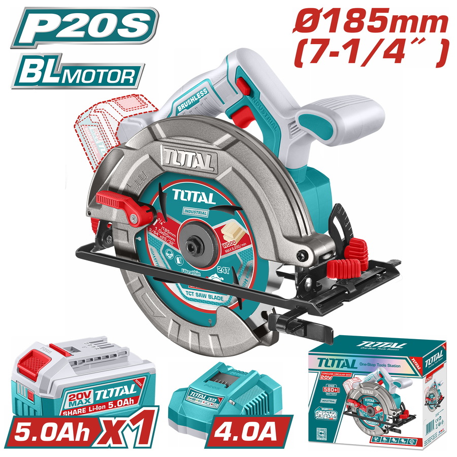 TOTAL ΣΕΤ ΕΠΑΓΓ. ΔΙΣΚΟΠΡΙΟΝΟ ΜΠΑΤ. Φ-185mm Li-ion 20V / 5Ah / 1 ΜΠΑΤ BL Motor (TSLI18513E)